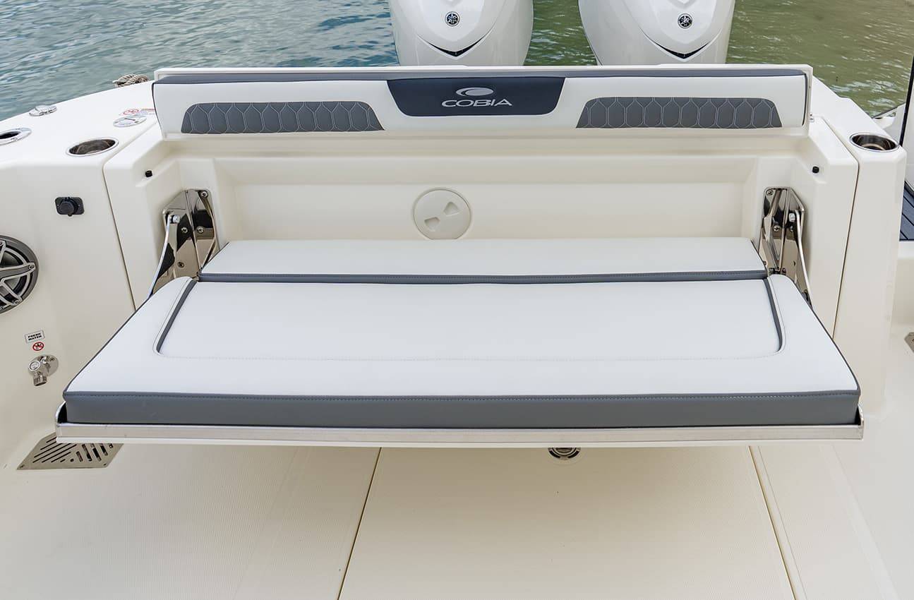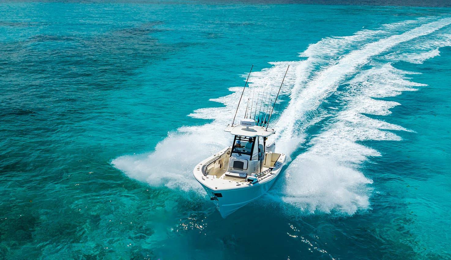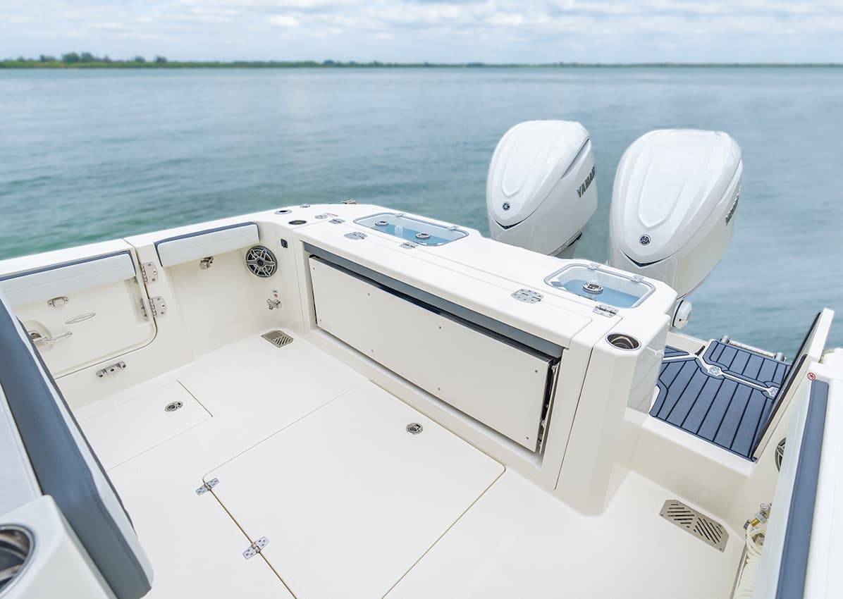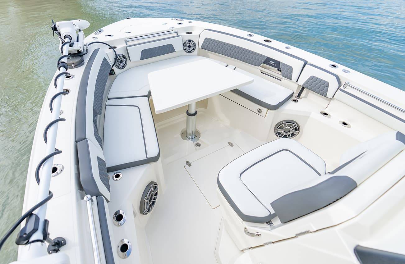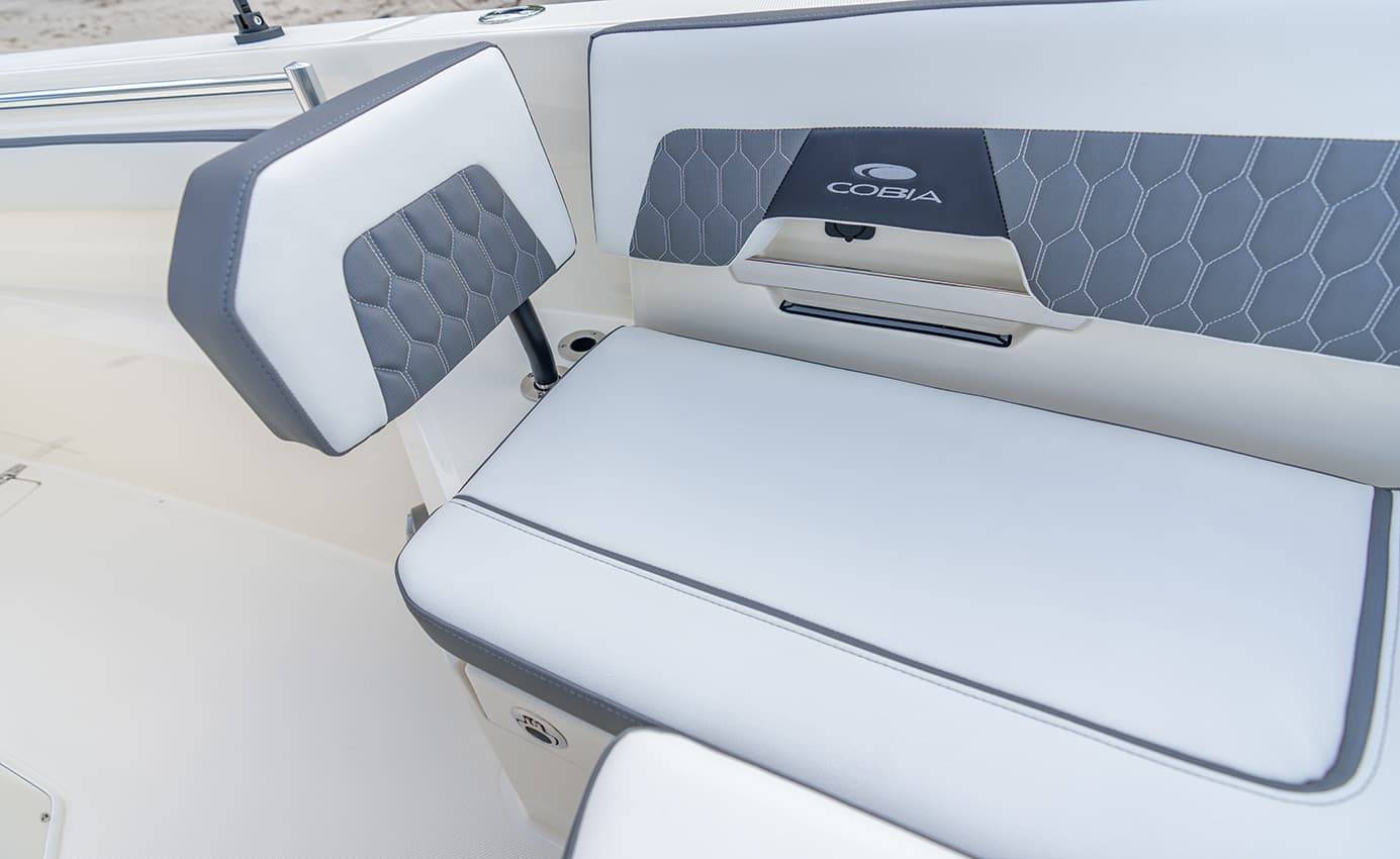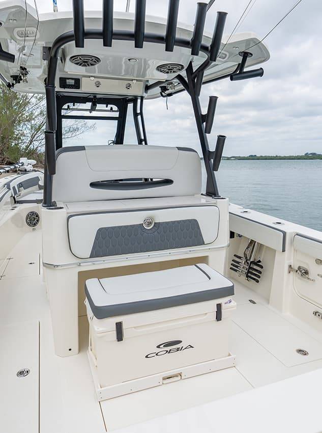 The Cobia 305 CC delivers an exceptionally smooth, dry ride and the optional Seakeeper Ride system, which auto-adjusts for ideal running angles and stability when underway, only adds to performance. Anglers will appreciate four strategically placed, insulated fishboxes and dual stern livewells alongside optional upgrades like the Garmin Force Kraken trolling motor and deep-drop package. With ample convertible seating, a spacious bow with adjustable table, easy-access head, and 265 gallons of usable fuel capacity, the 305 CC blends 30-foot center console fishing power with comfort your whole family will appreciate.