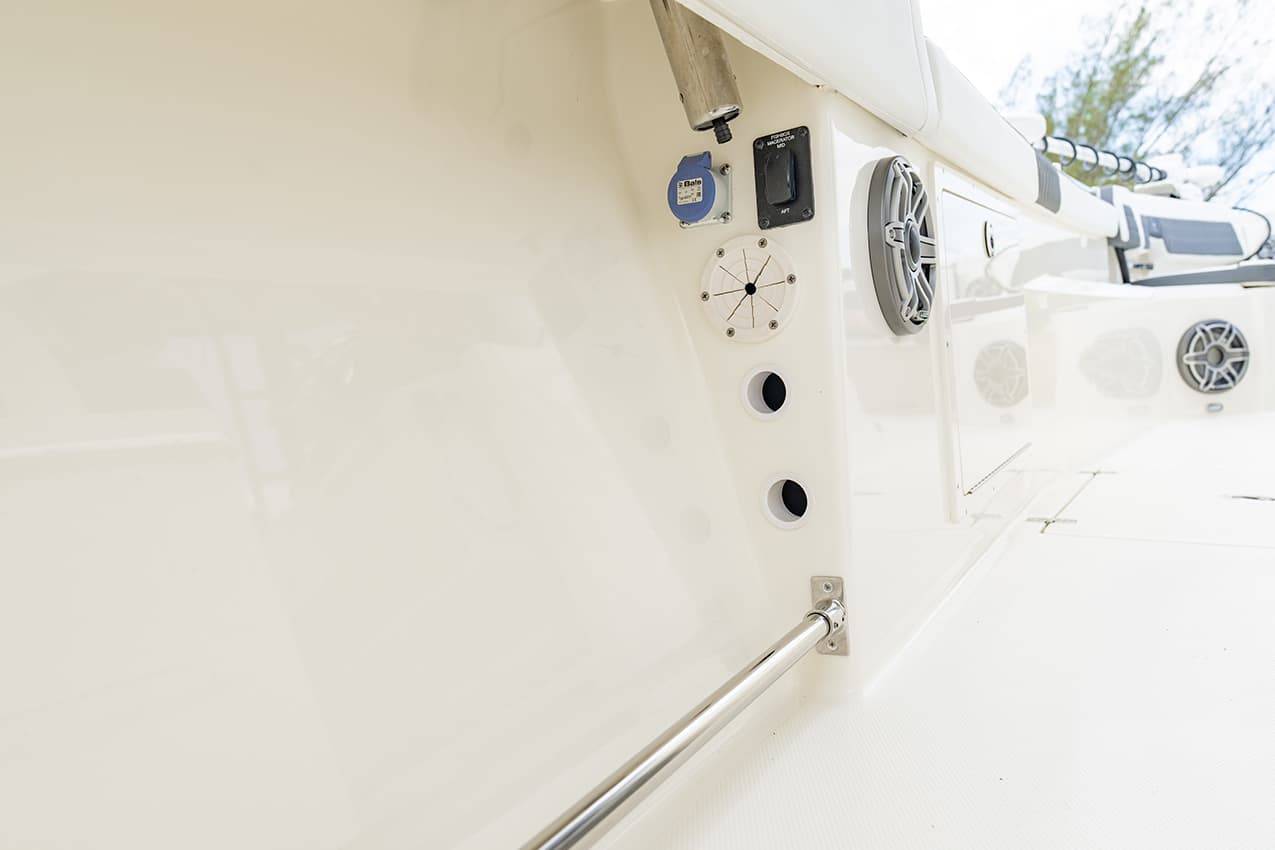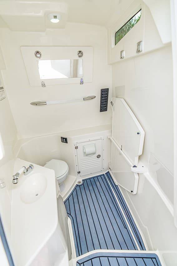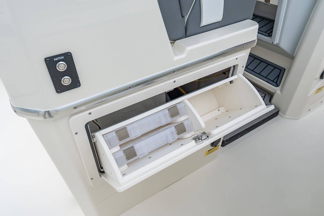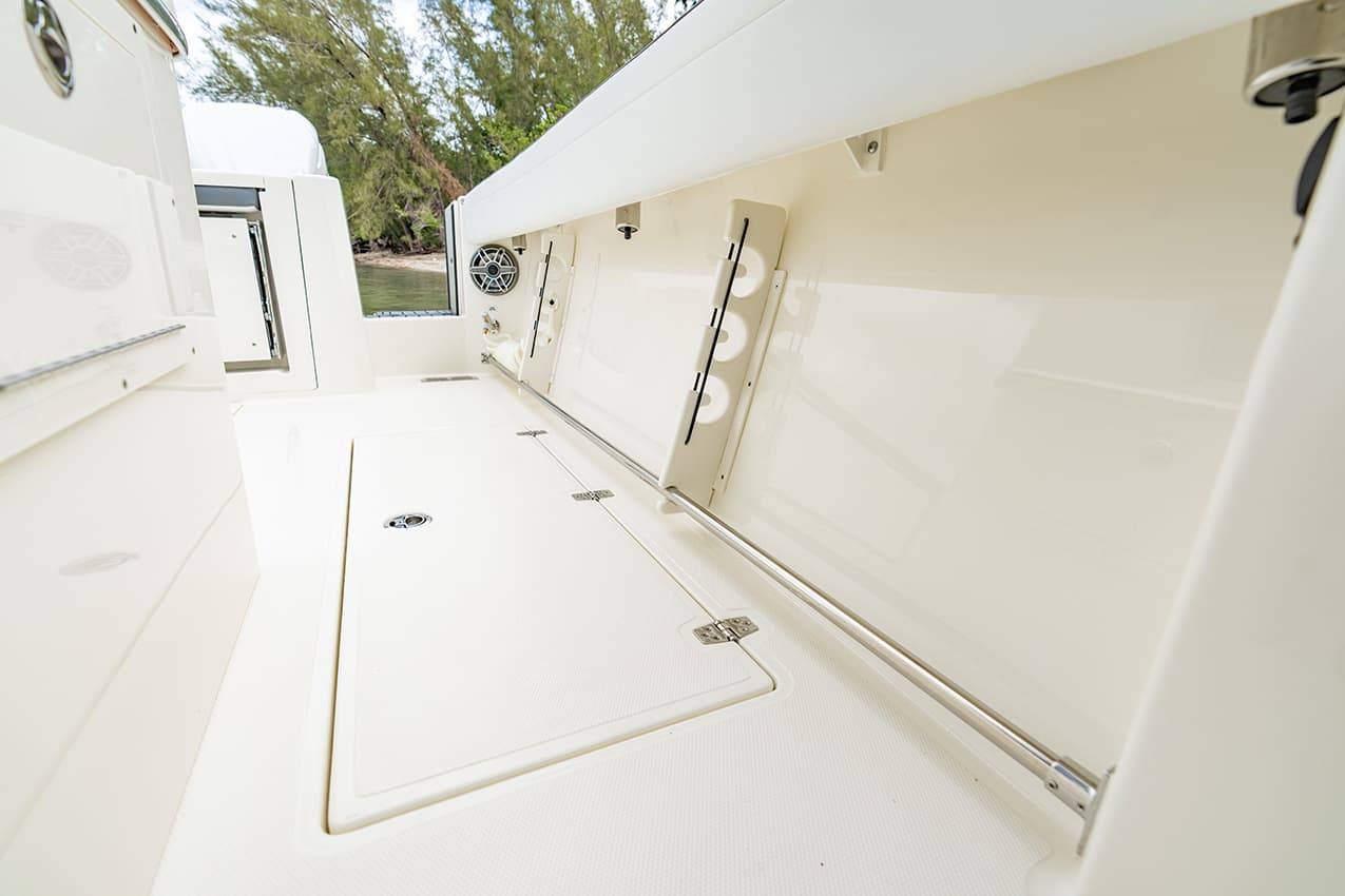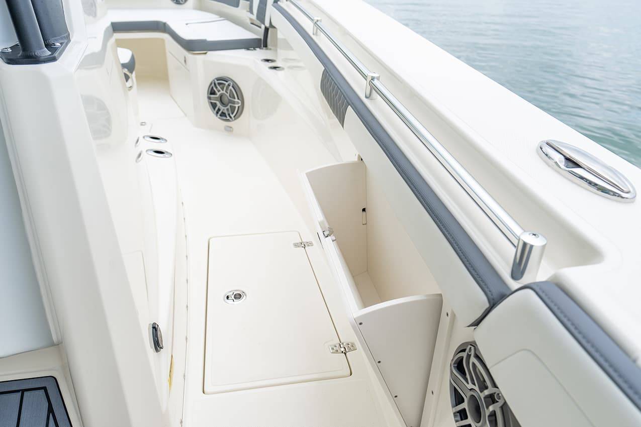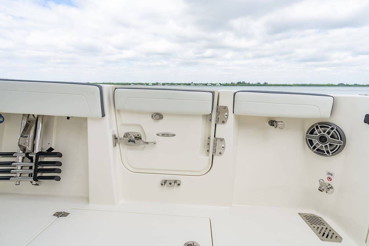 The Cobia 305 CC delivers an exceptionally smooth, dry ride and the optional Seakeeper Ride system, which auto-adjusts for ideal running angles and stability when underway, only adds to performance. Anglers will appreciate four strategically placed, insulated fishboxes and dual stern livewells alongside optional upgrades like the Garmin Force Kraken trolling motor and deep-drop package. With ample convertible seating, a spacious bow with adjustable table, easy-access head, and 265 gallons of usable fuel capacity, the 305 CC blends 30-foot center console fishing power with comfort your whole family will appreciate.