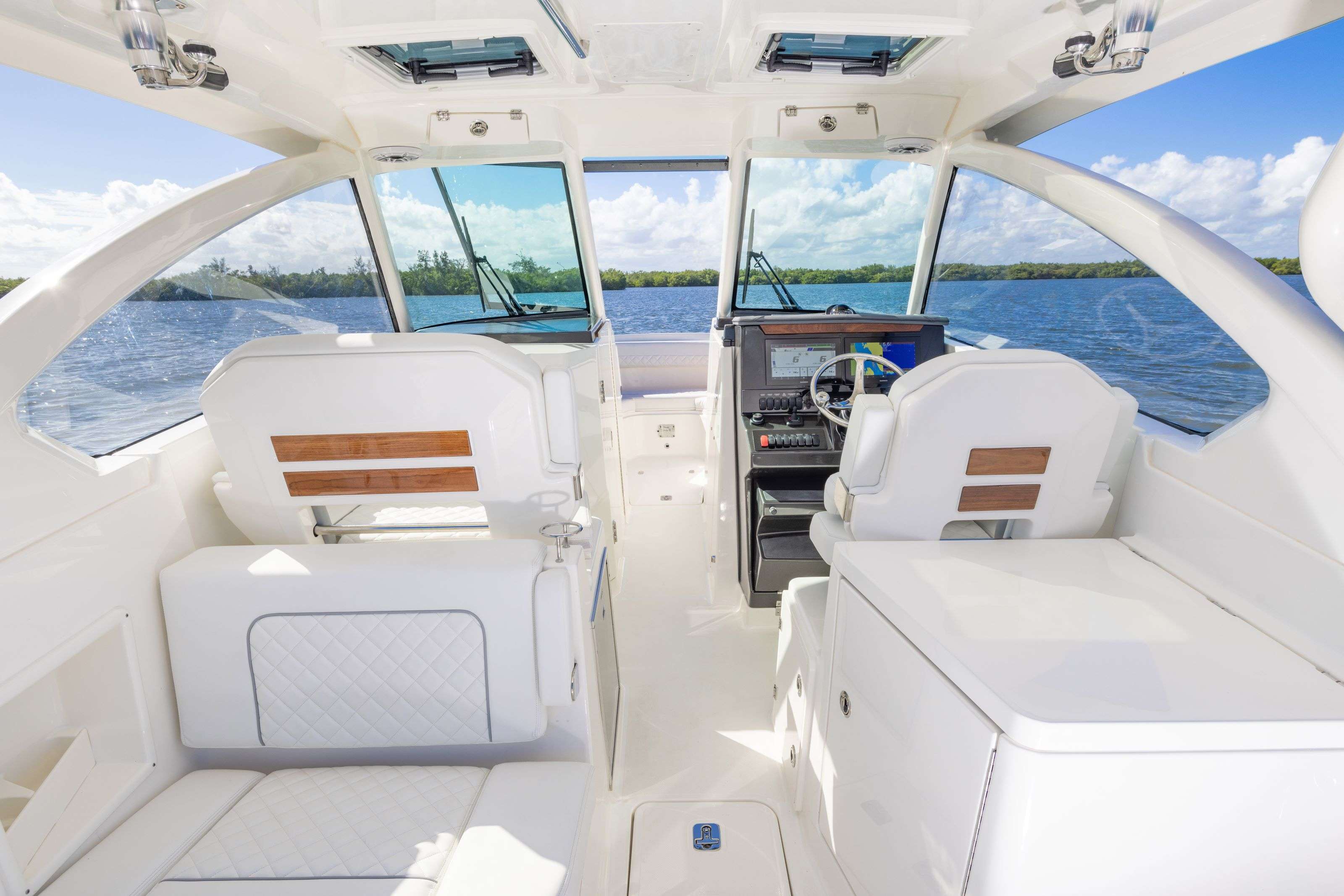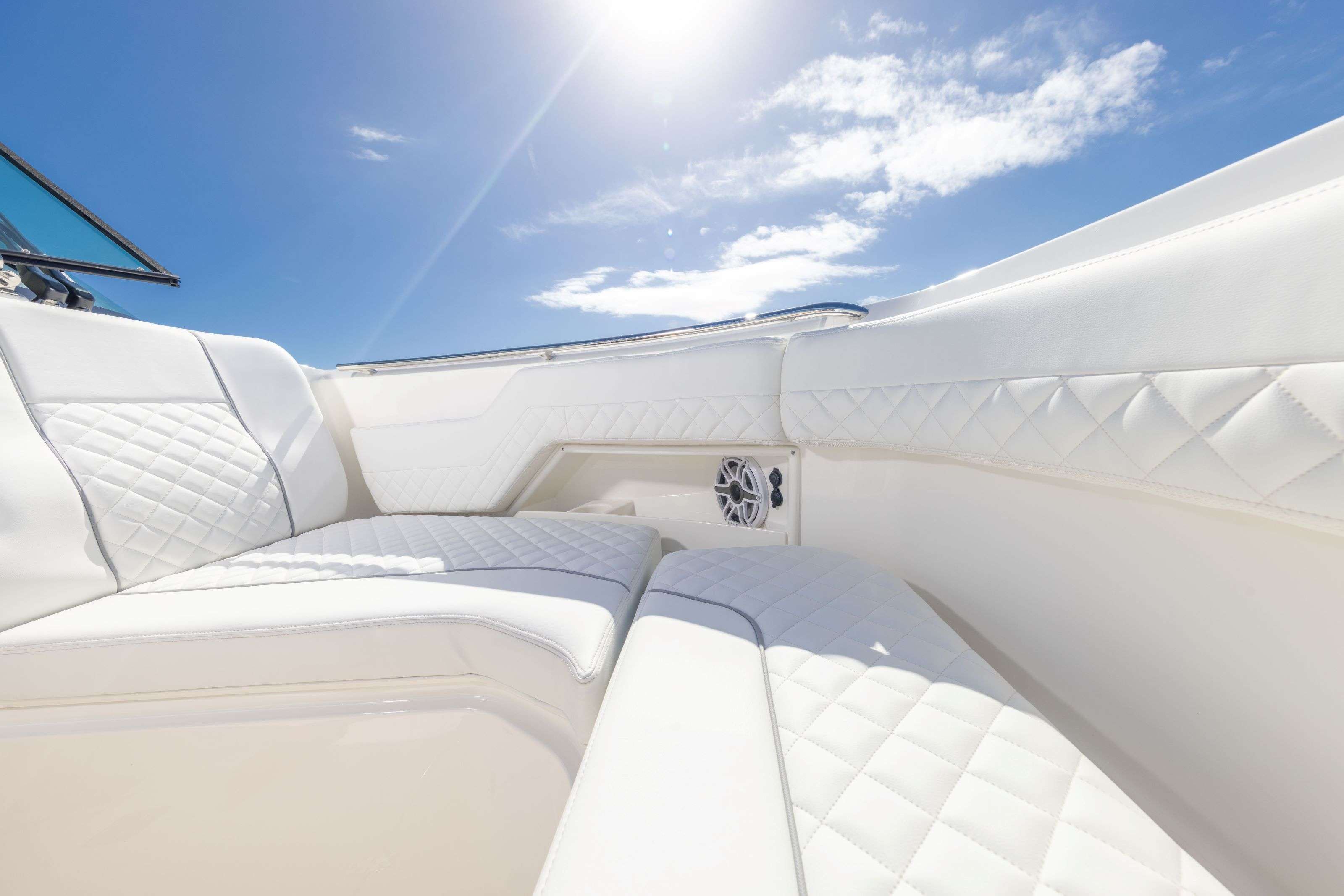 The Pursuit DC 306 builds on the reputation of one of the brand’s most popular Dual Consoles, the DC 295. An integrated hardtop, crystal–clear tempered windshield, convertible seating arrangements and item-specific storage are a few of the highlights in our latest luxury dual console boat.