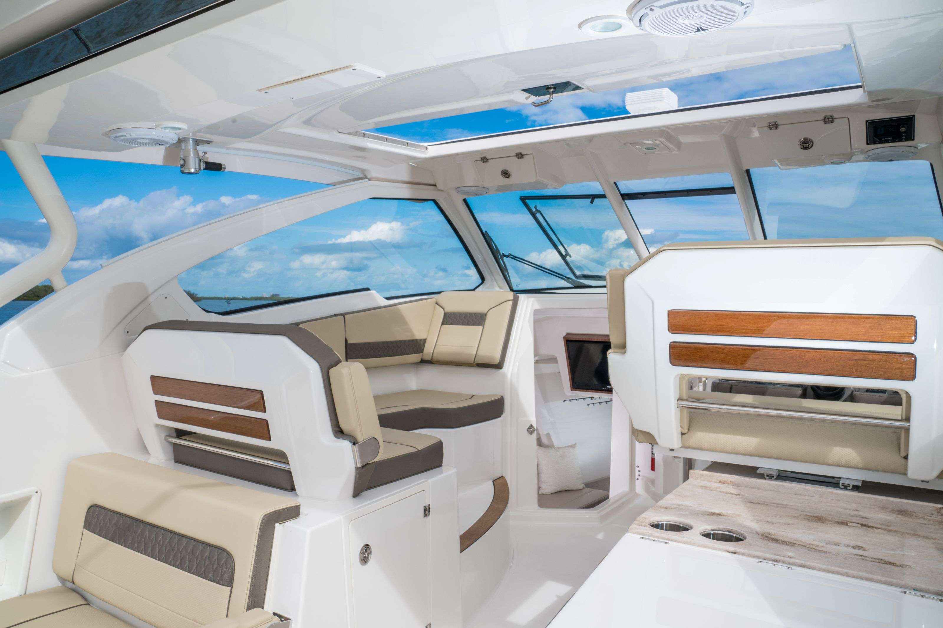 Features include a large tempered glass windshield with walkthrough, wide walkways from bow to stern and plenty of large storage compartments. Instrumentation and controls at the helm are ergonomically engineered and an optional Garmin electronics suite makes the DC 365 a joy to operate.