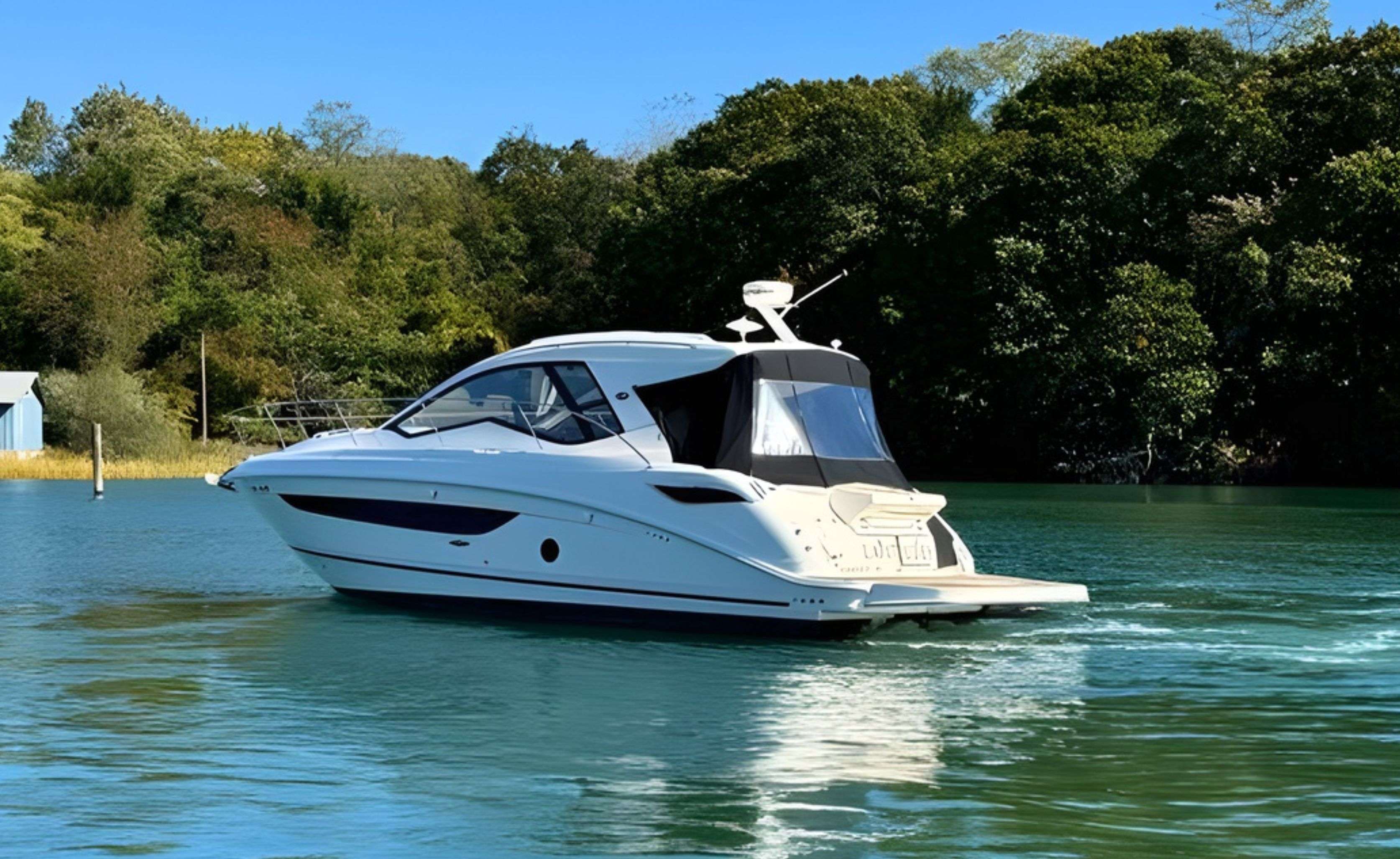 Beautifully equipped express cruiser with hardtop, sunroof, and Twin MerCruisers