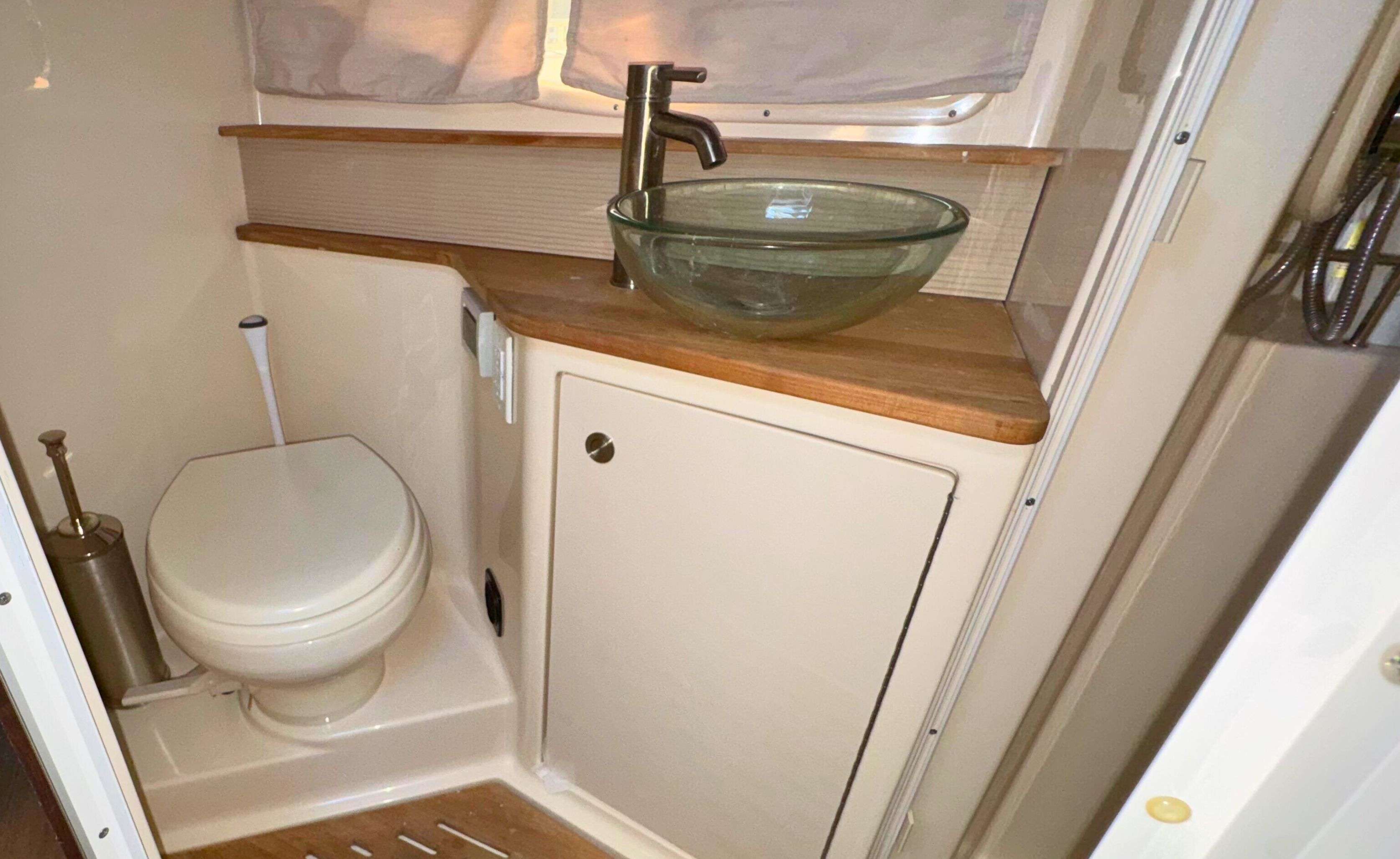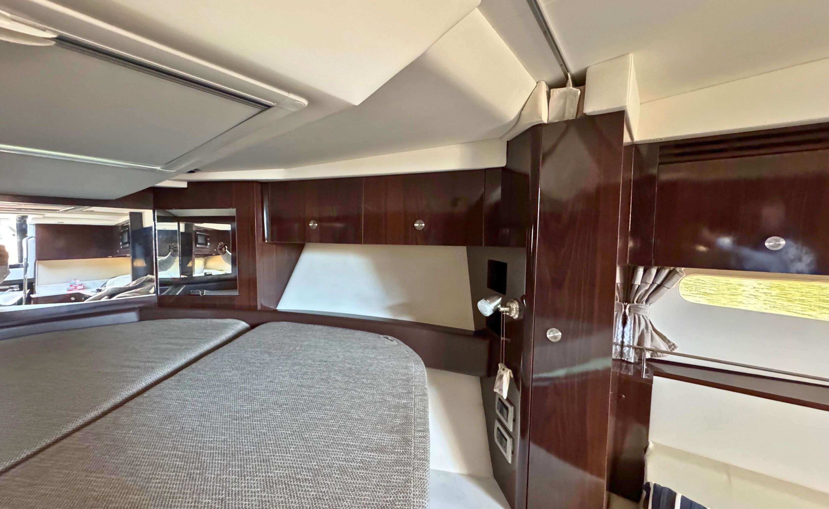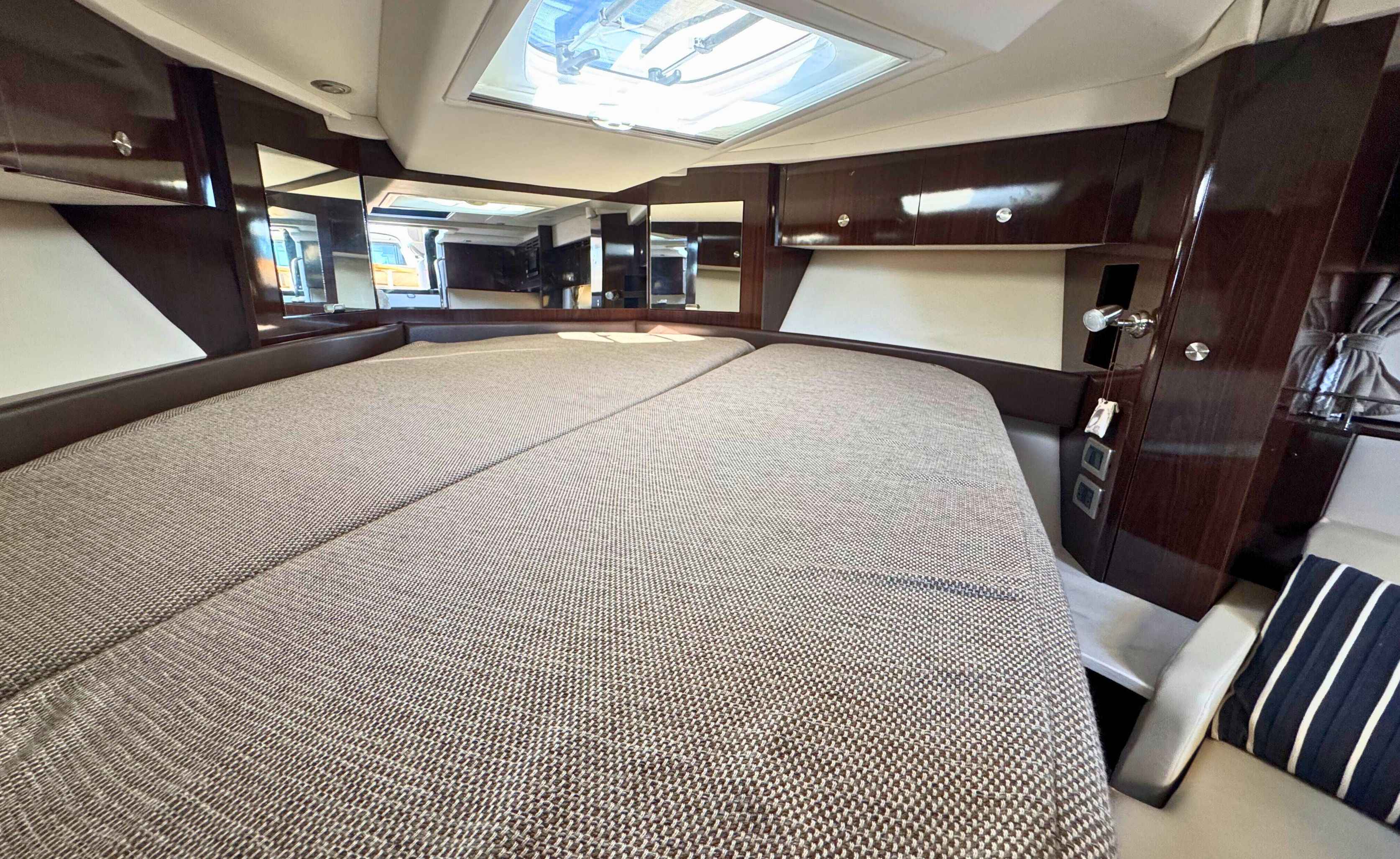 - Forward island-style double berth