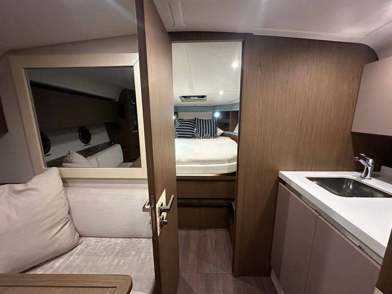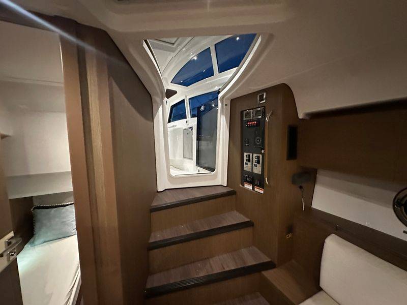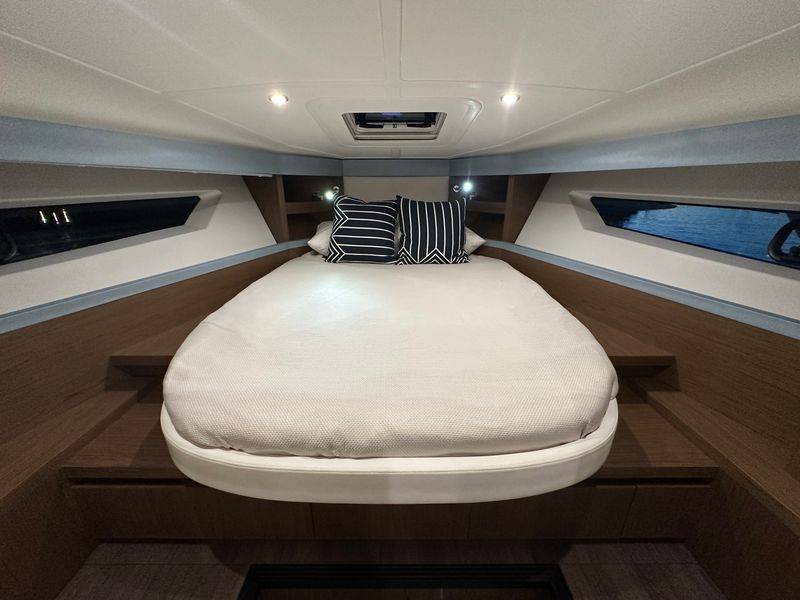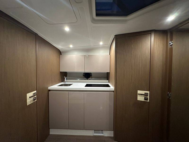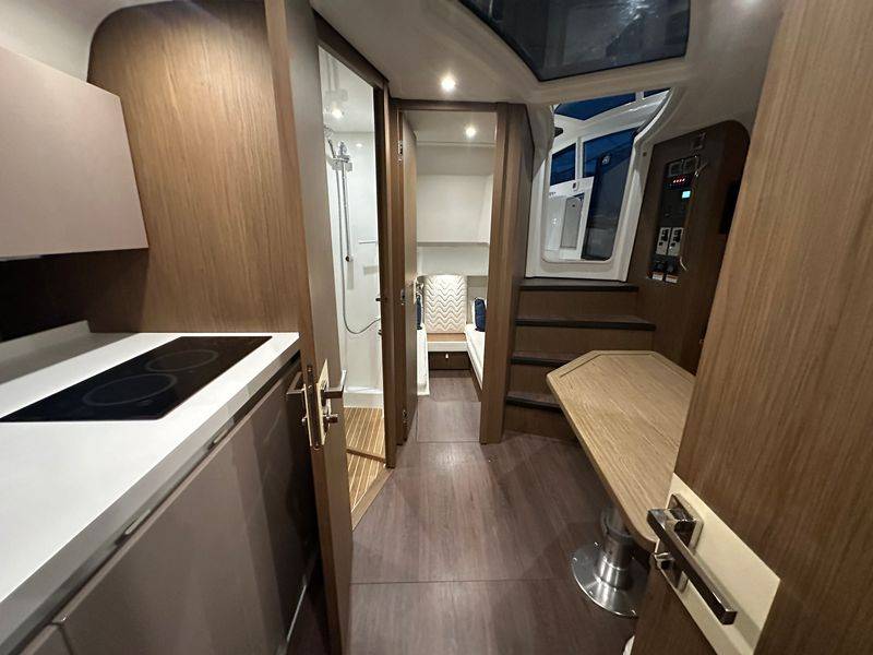 The spacious cockpit is cleverly arranged and can comfortably accommodate up to 11 guests, making it perfect for social gatherings or relaxed cruising. Two layout configurations are available — with the outdoor galley positioned aft — offering flexibility to suit your lifestyle on board.