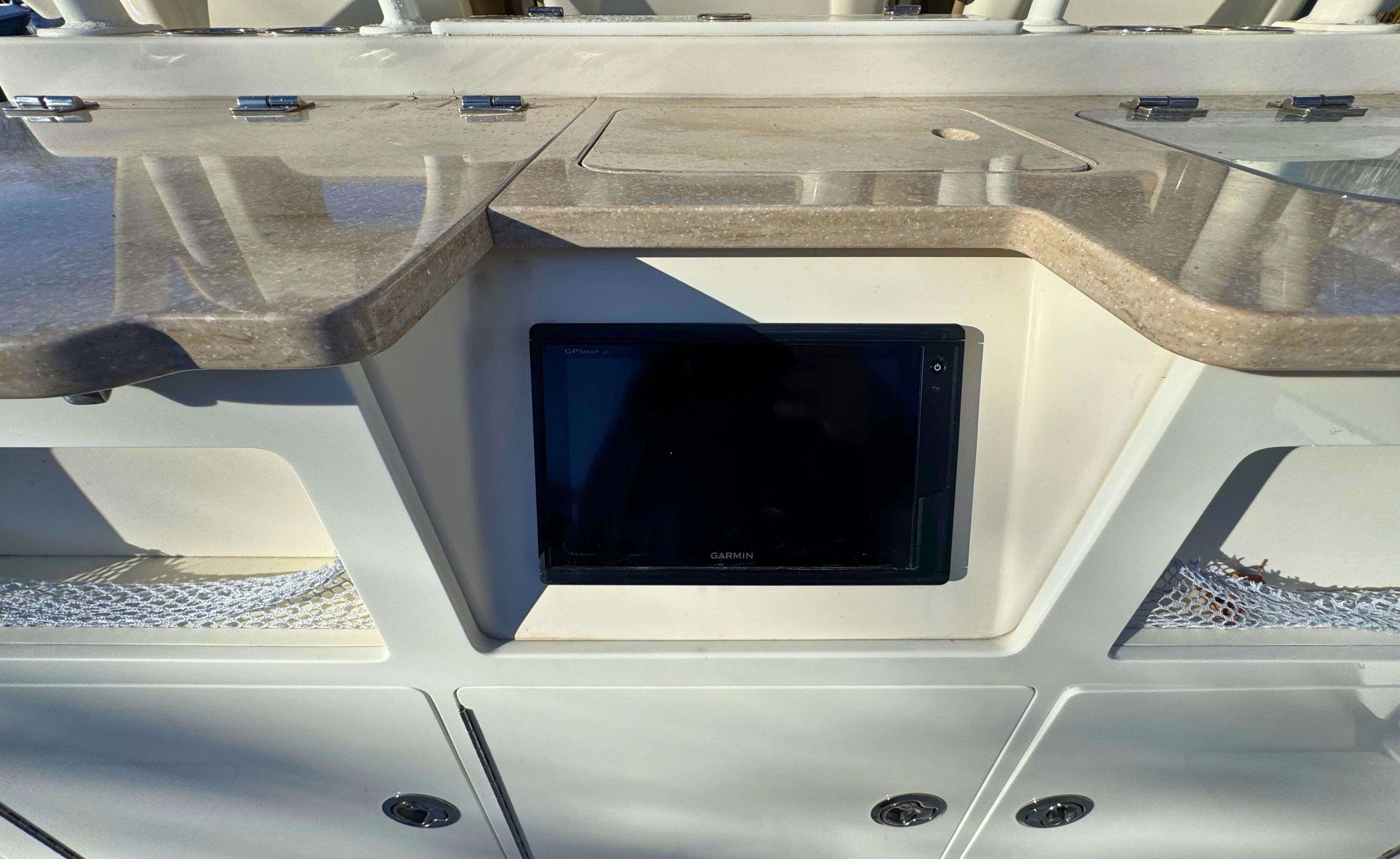 Garmin GPSMAP 12” display mounted at the bait prep center