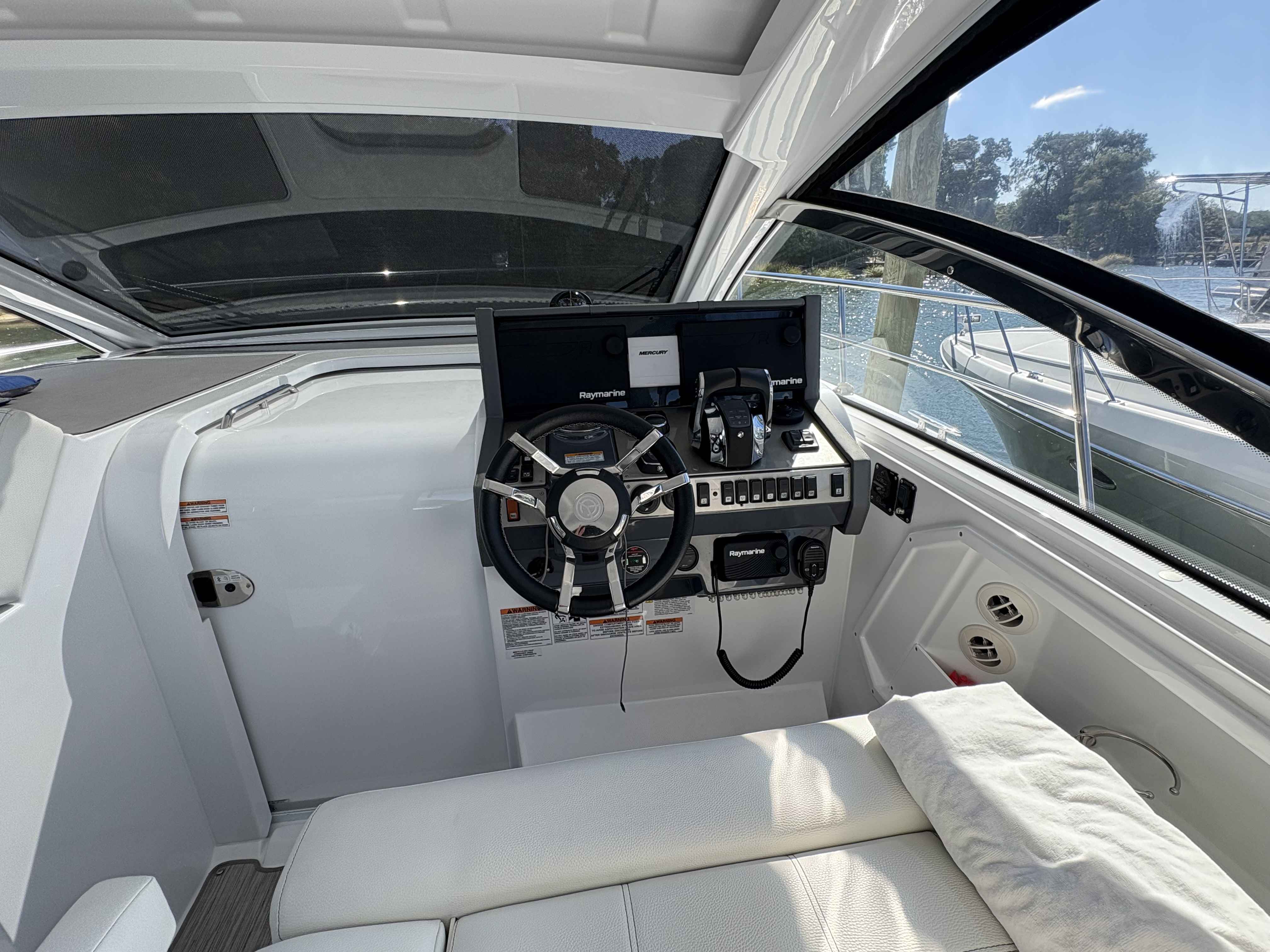 This 2021 Cruisers Yachts 390 Express Coupe is the perfect combination of luxury, performance, and versatility. Powered by Twin MerCruiser 8.2 MAG B3X Axi.Prem. Seacore 380HP engines (only 170 hours) and Joystick control, this yacht delivers thrilling performance with reliability and efficiency. Designed with a spacious cockpit, premium entertainment features, and a refined interior, the 390 EC is ideal for weekend cruising, entertaining, and extended getaways.