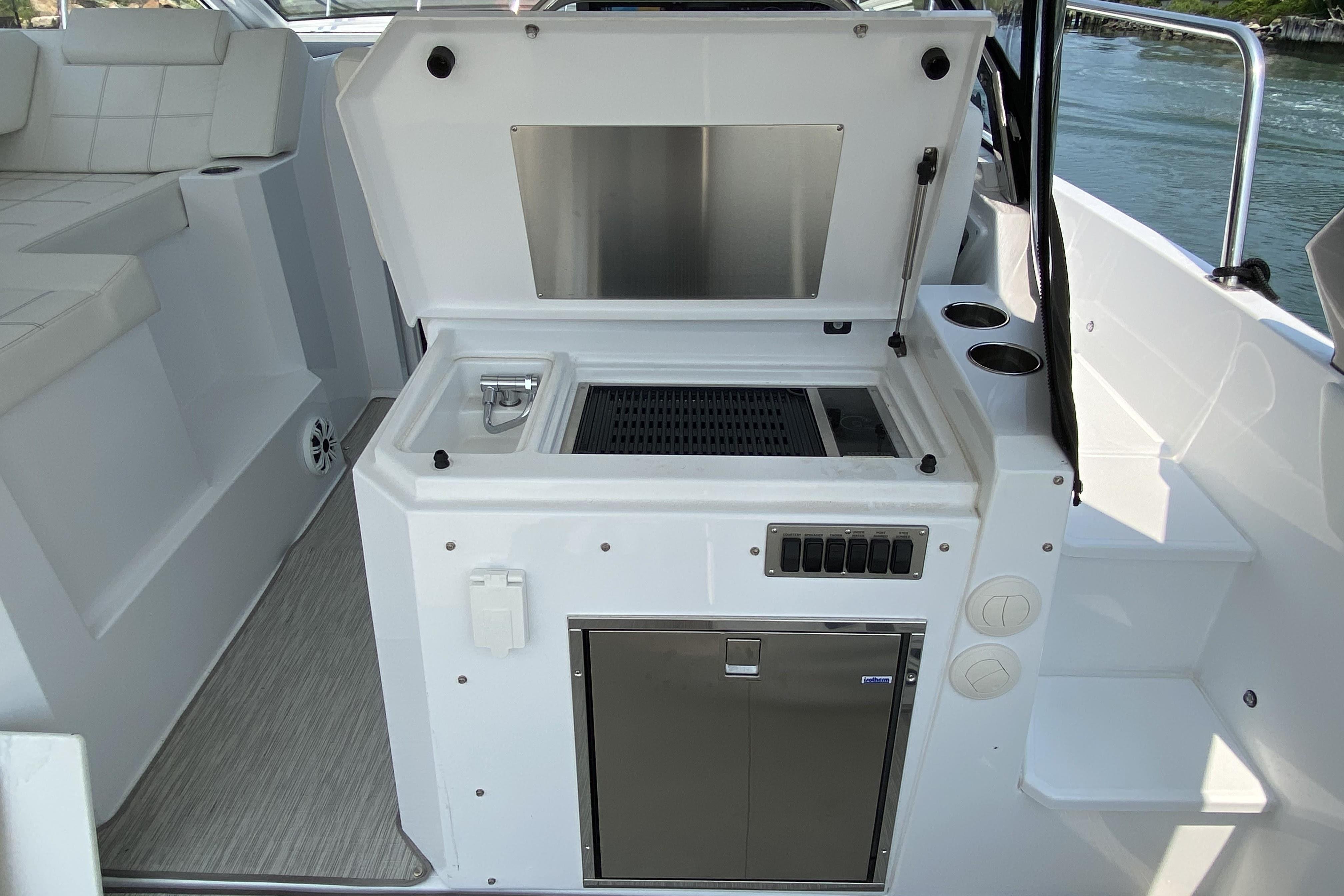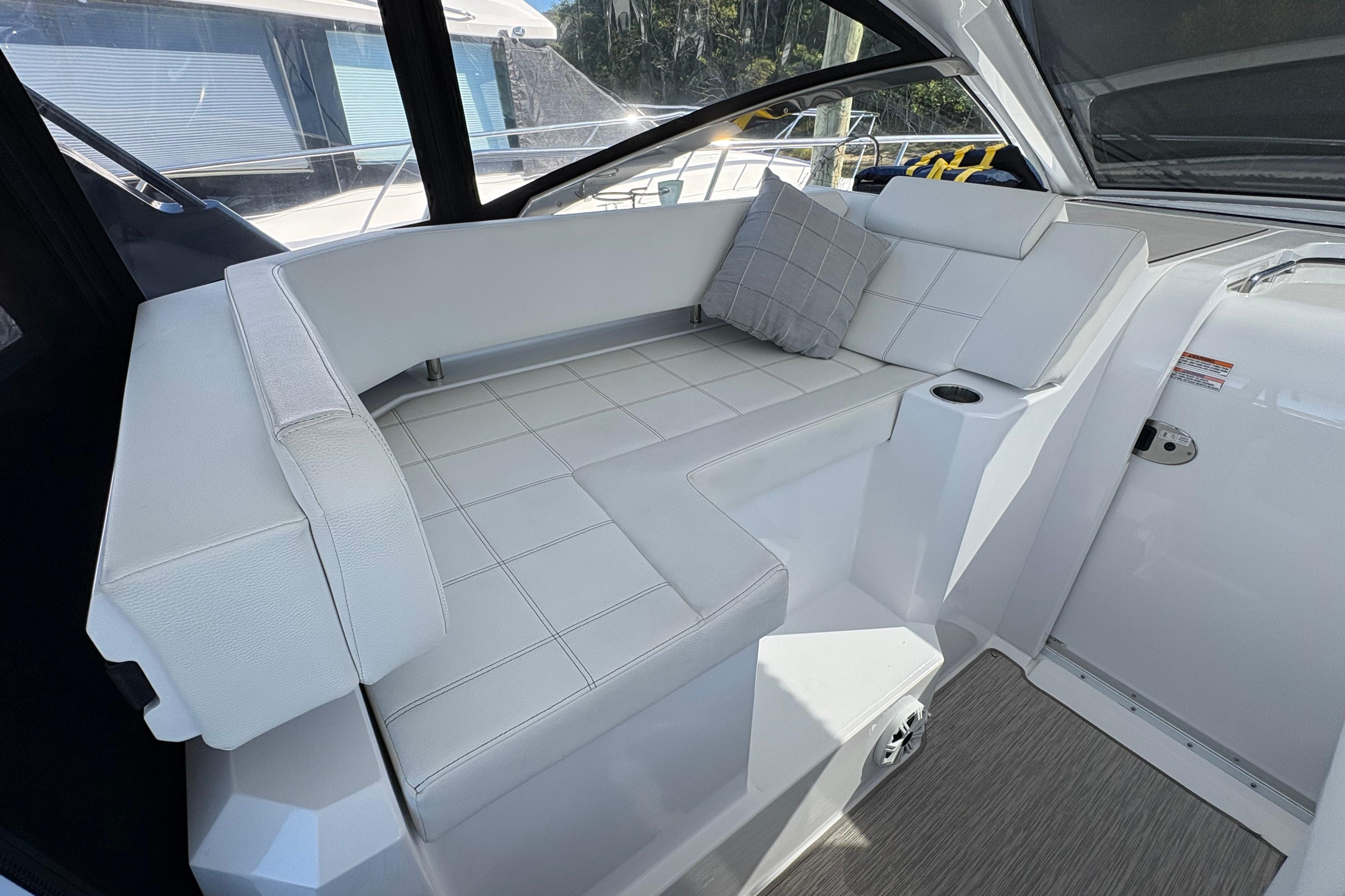 This 2021 Cruisers Yachts 390 Express Coupe is the perfect combination of luxury, performance, and versatility. Powered by Twin MerCruiser 8.2 MAG B3X Axi.Prem. Seacore 380HP engines (only 170 hours) and Joystick control, this yacht delivers thrilling performance with reliability and efficiency. Designed with a spacious cockpit, premium entertainment features, and a refined interior, the 390 EC is ideal for weekend cruising, entertaining, and extended getaways.