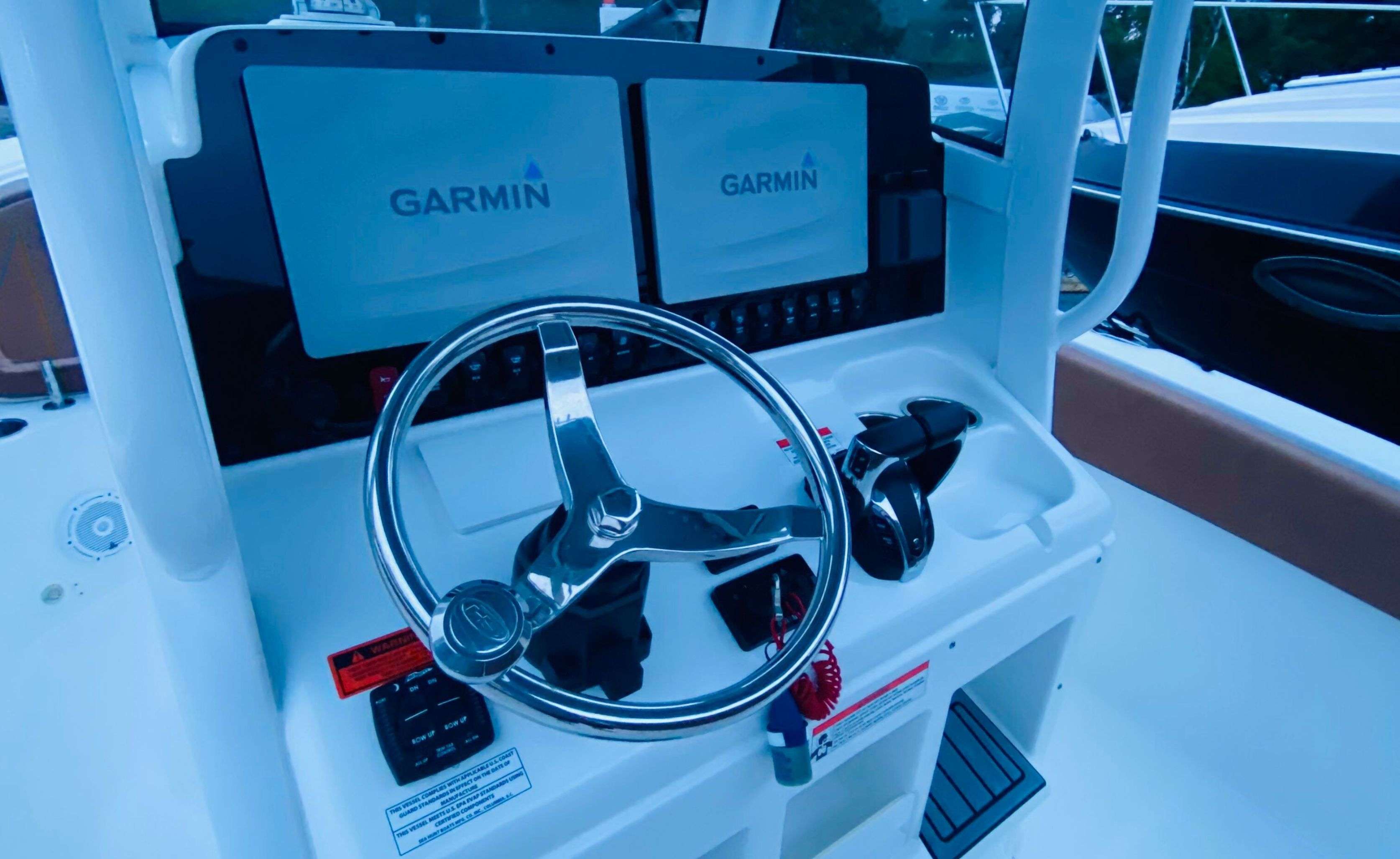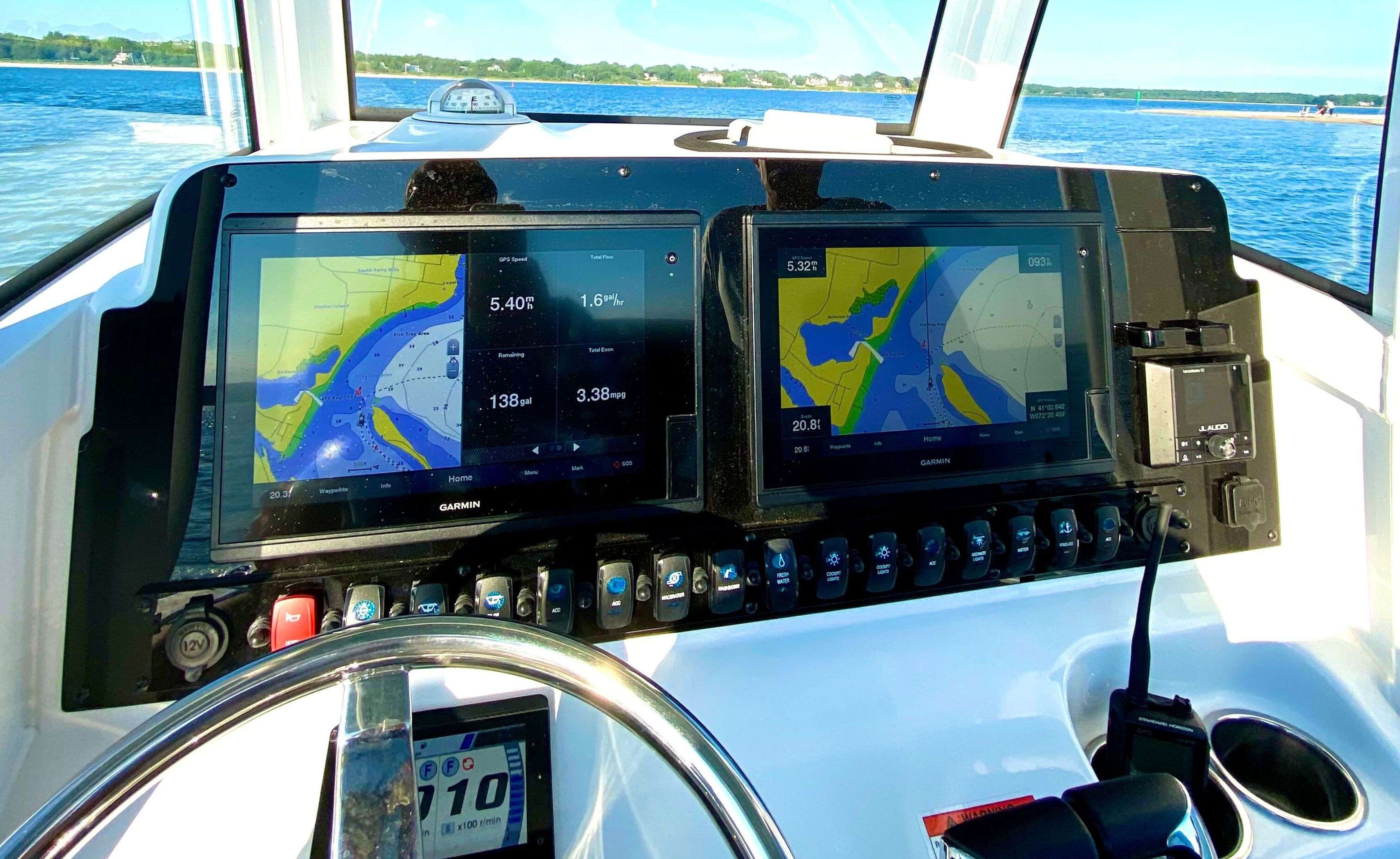 - Twin Garmin 12" Multifunction Displays – Premium navigation and fish finding package