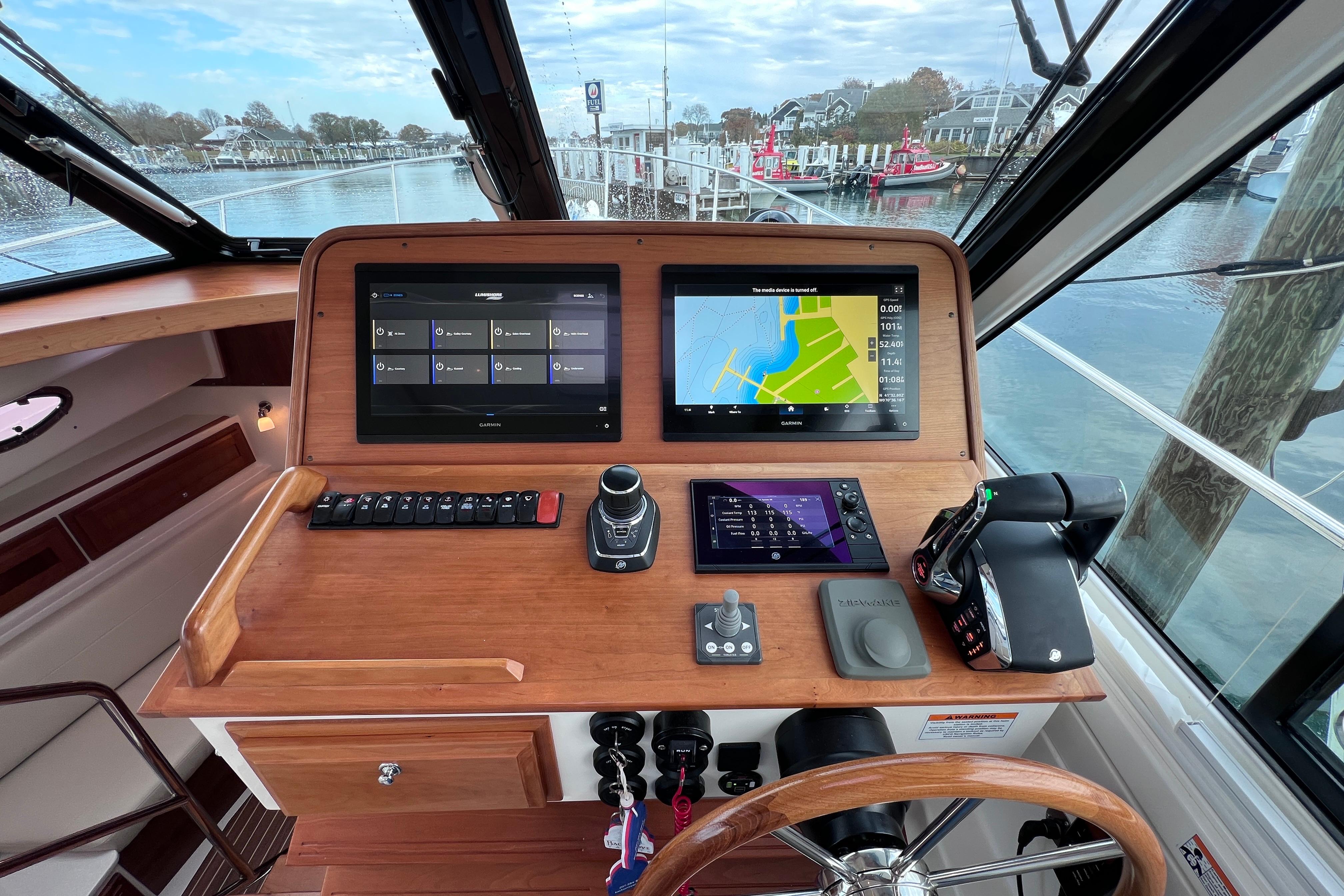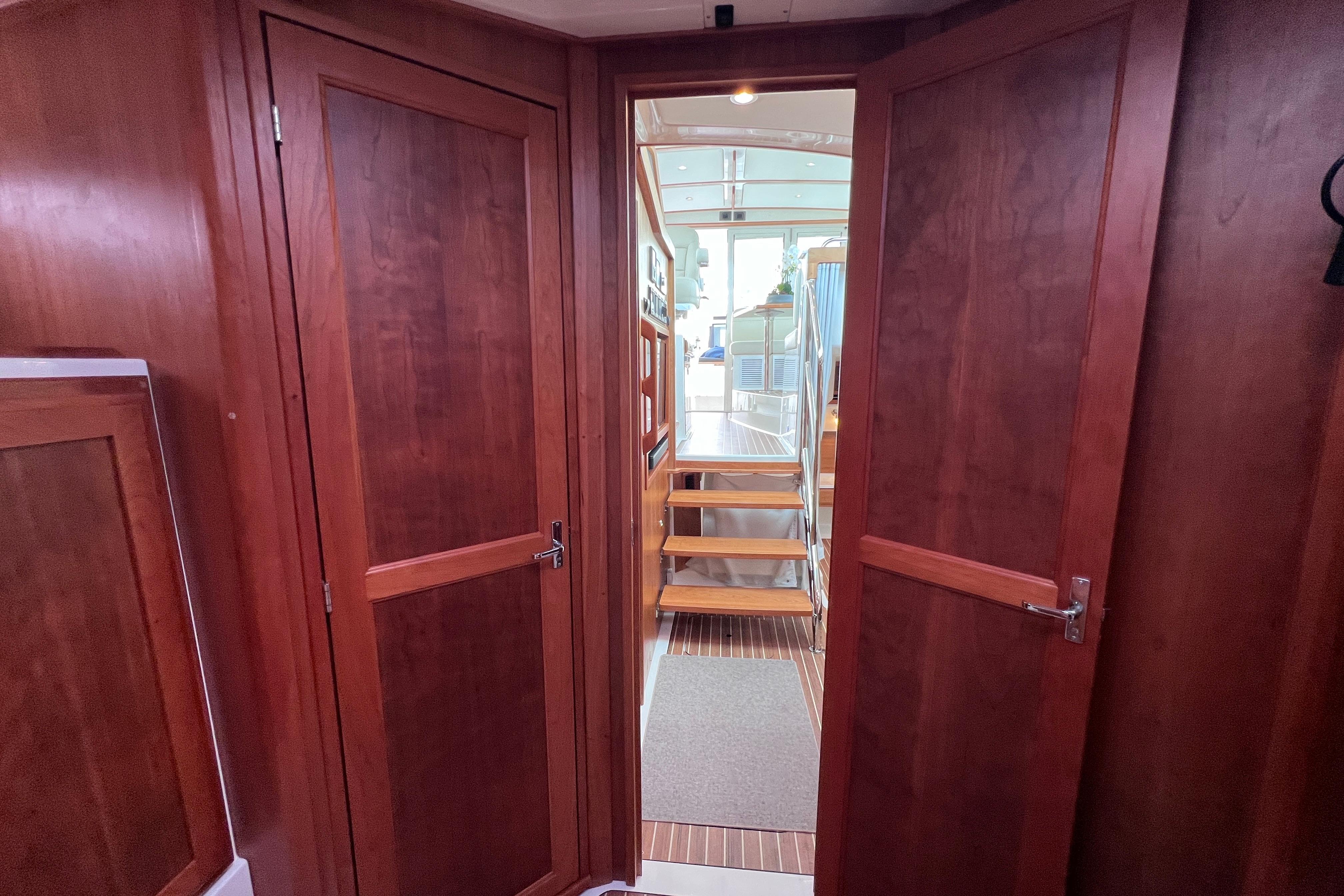 Below deck, guests enjoy a private lower lounge with a Smart TV, while the owner’s stateroom features a queen island berth and private ensuite access to the head and shower. The guest cabin offers two generous single berths, ensuring everyone aboard rests in comfort.