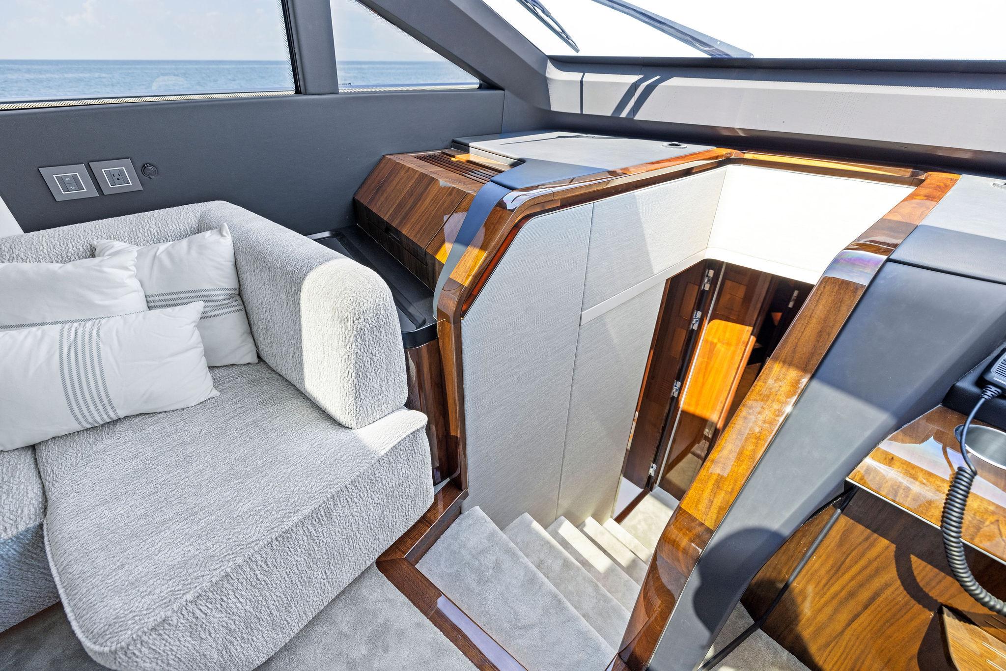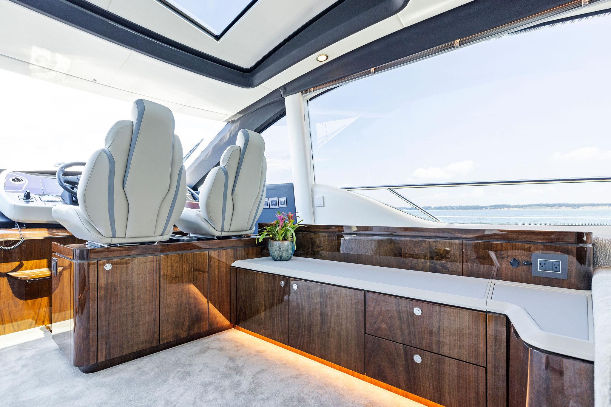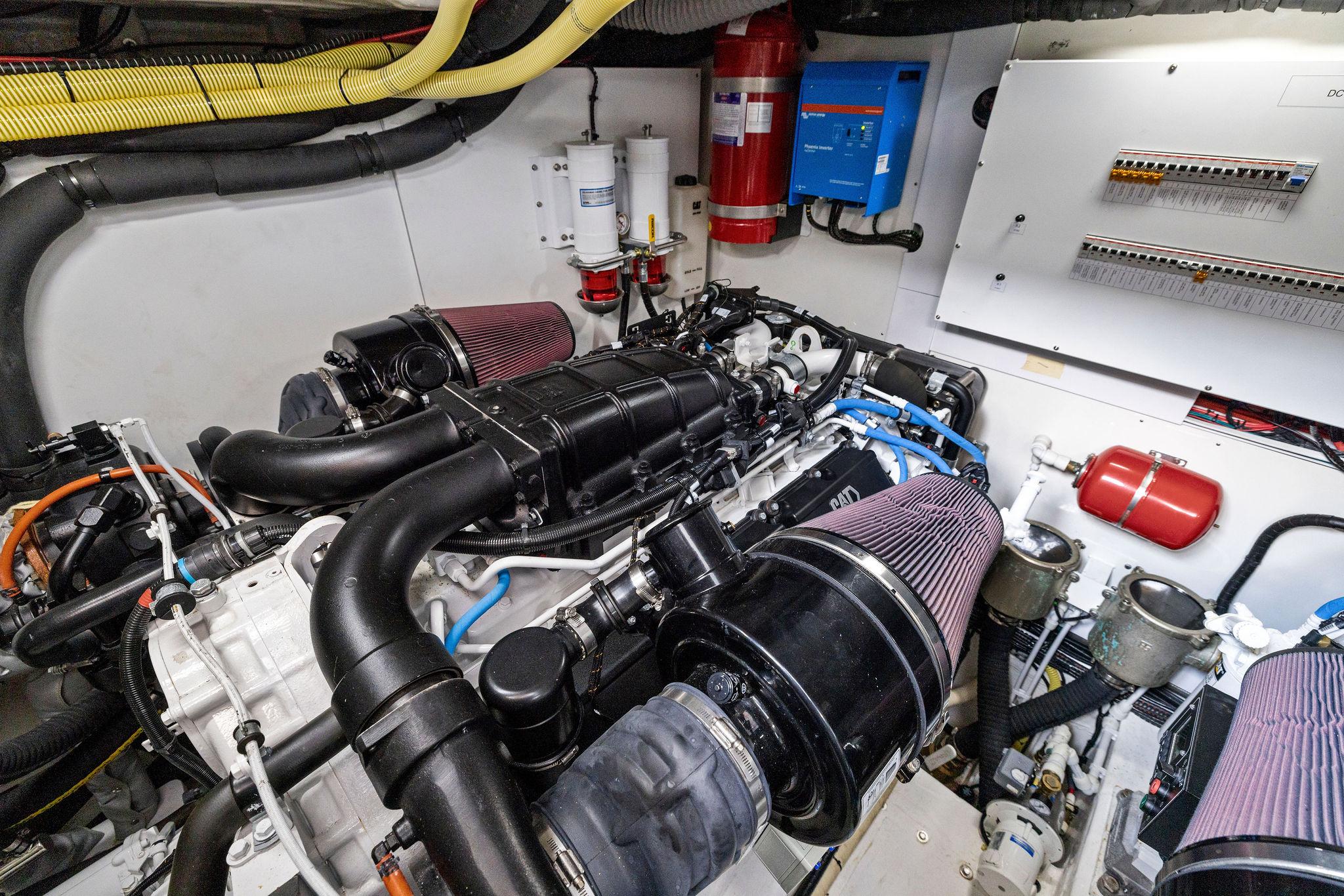 Step aboard and discover refined craftsmanship and innovation throughout — from the twin Caterpillar C32-1622 engines to the state-of-the-art Garmin navigation suite. Lounge beneath the hydraulic charcoal bimini, enjoy alfresco dining with a griddle and icemaker sportbridge bar, and unwind to the glow of customizable underwater RGB lighting.