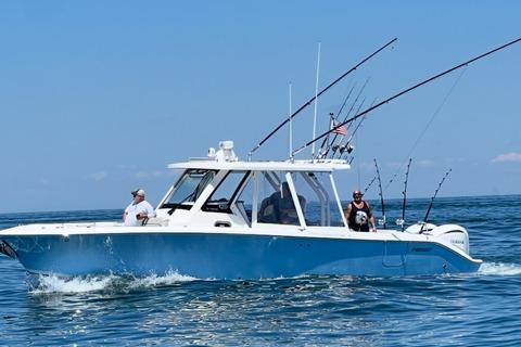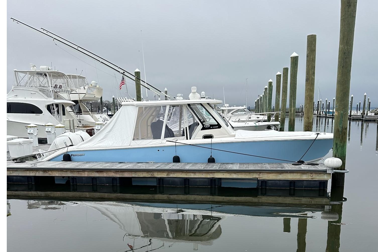 The Pursuit S 328 broadens the range of the Pursuit’s popular Sport Series. The athletic 32 features an oversized fiberglass integrated hardtop and windshield system, updated classic sheerline, through-stem anchor system and integrated transom extensions. The exterior styling is complimented by a forward wrap-around lounge at the bow, just opposite of the forward facing seating in the console.